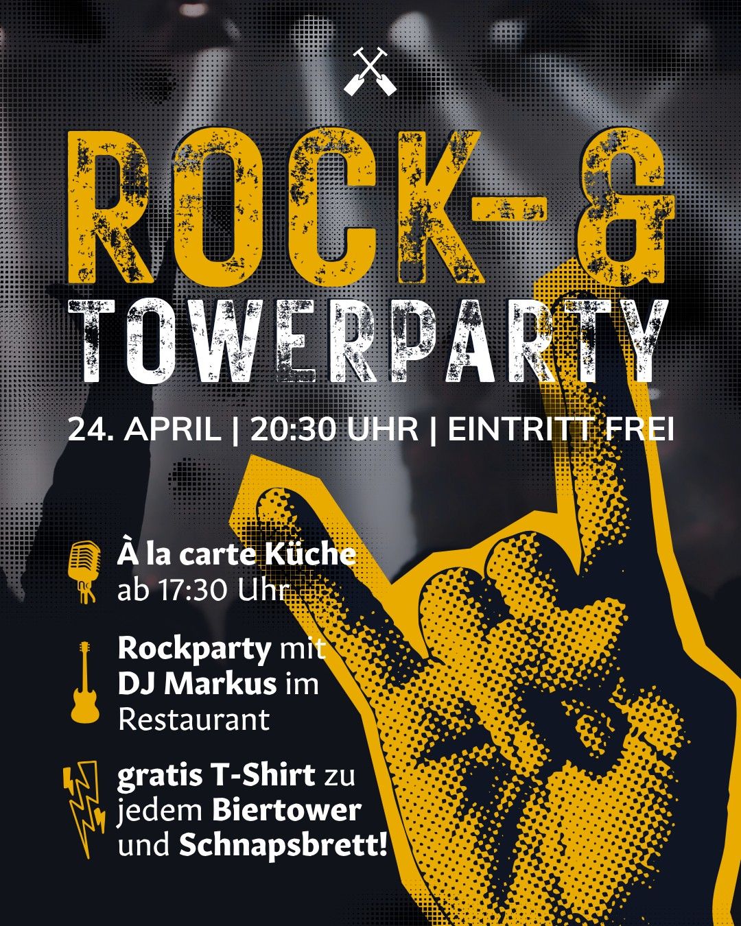 Rockparty im Restaurant mit Livemusik von DJ Markus. Barbetrieb mit Bier- und Aperoltower mit gratis T-Shirt. Hier reservieren.